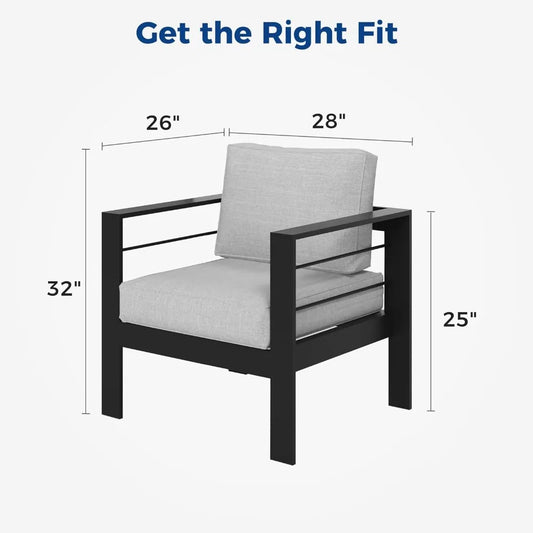 2 Pieces Patio Furniture Aluminum Armchair All-Weather Outdoor Single Sofa Black Metal Chair with Light Grey Cushions