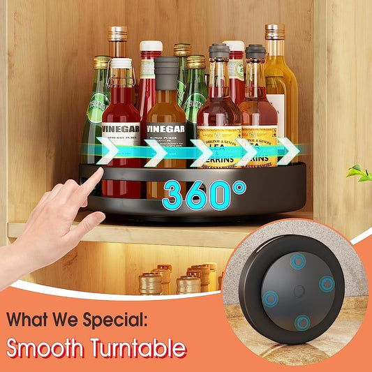 10-Inch Metal Lazy Susan Turntable Organizer for Cabinet, Kitchen, and Pantry - Rotating Spice Rack with Black Finish