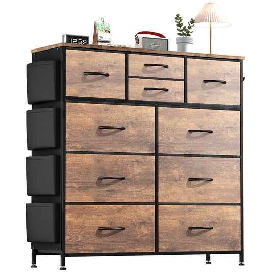 10 Drawer Dresser, Chest of Drawers for Bedroom Fabric Dressers with Side Pockets and Hooks, Brown