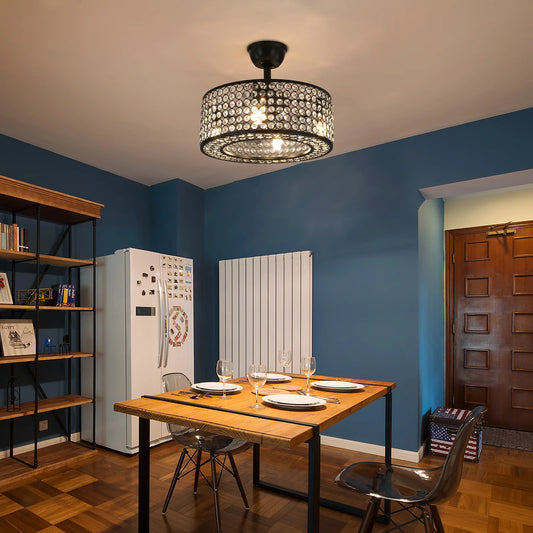18" Caged Crystal Ceiling Fan Light Modern Enclosed Invisible Chandelier 7 Blades 3 Speed Remote Pendant Lamp 4Xe14