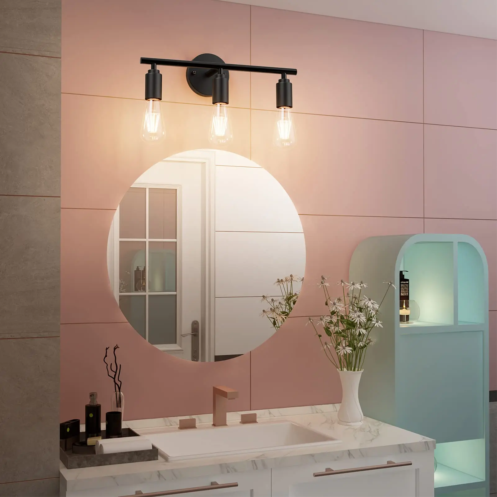 3 Light Vintage Wall Lamp Bathroom Mirror Lamp Black Metal E26 E27 Modern Wall Light Indoor Aisle Hallway Living Room Bedroom