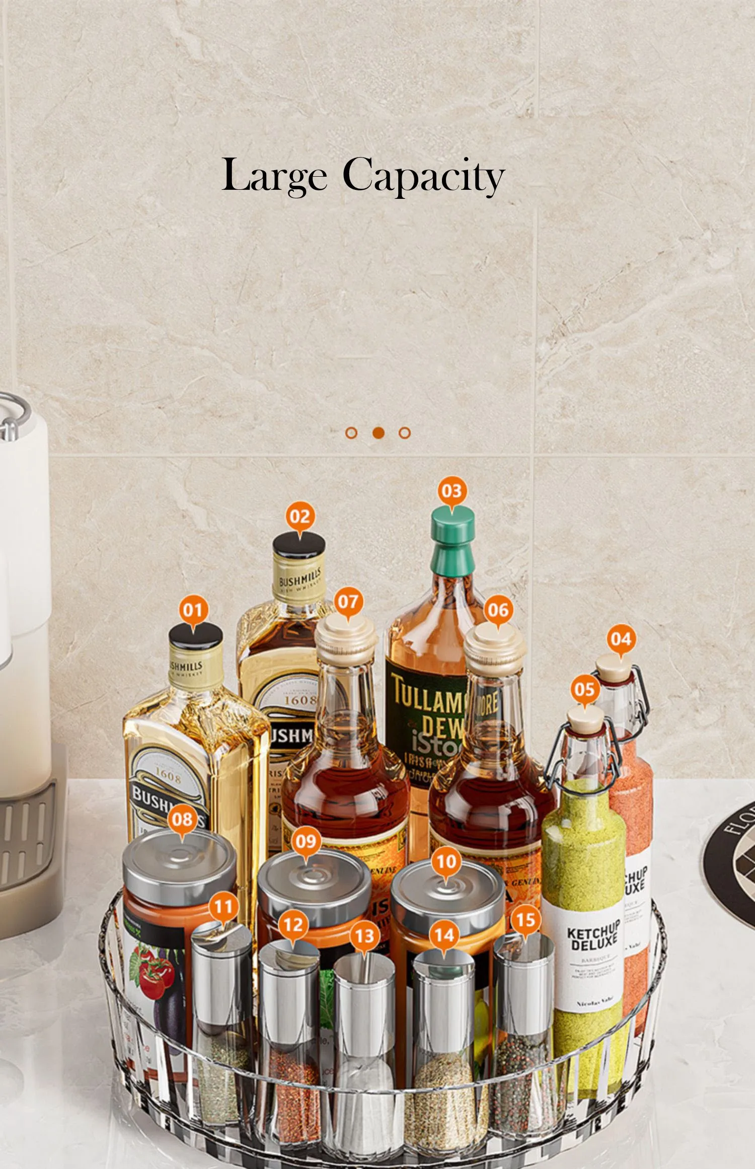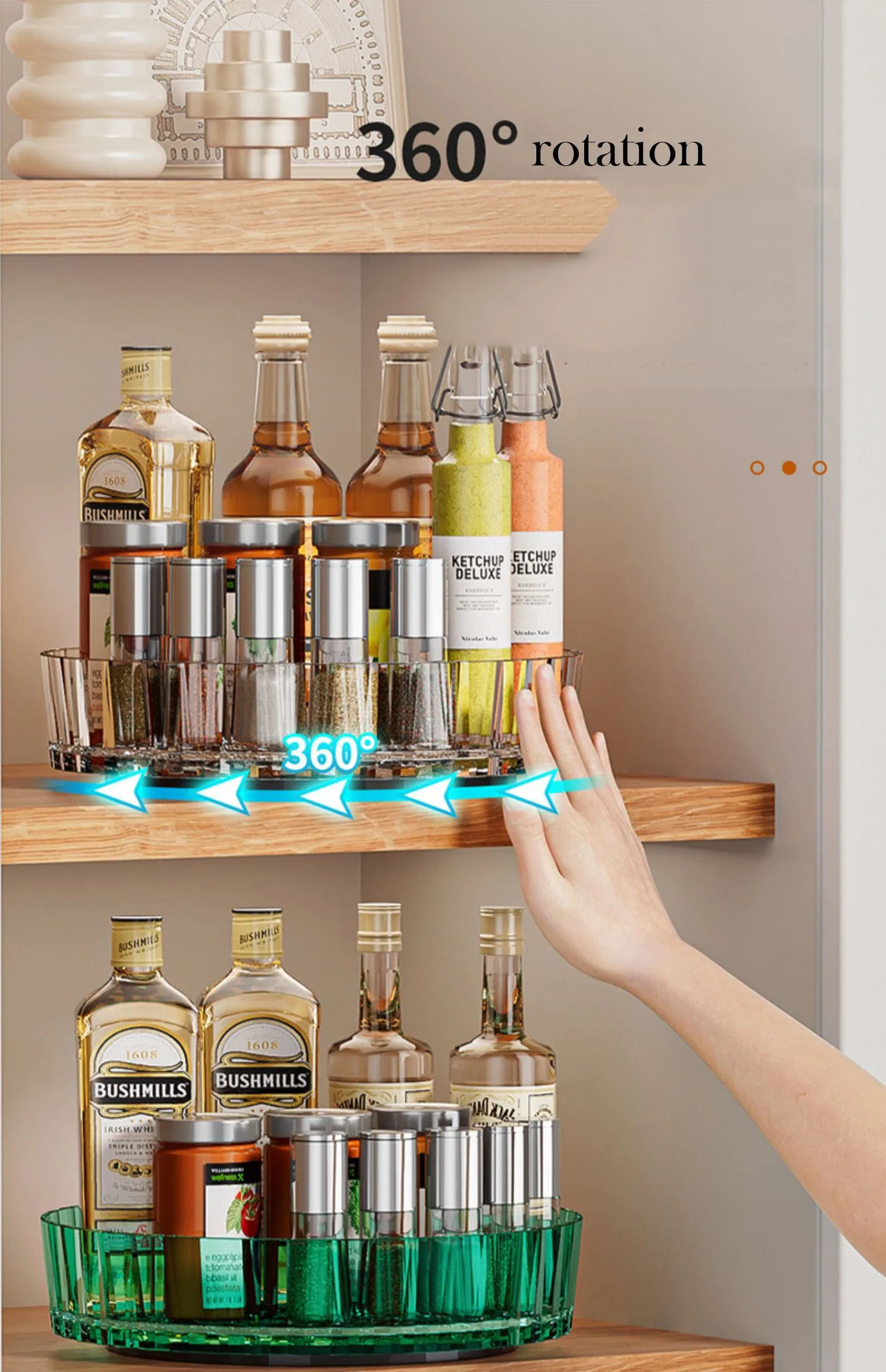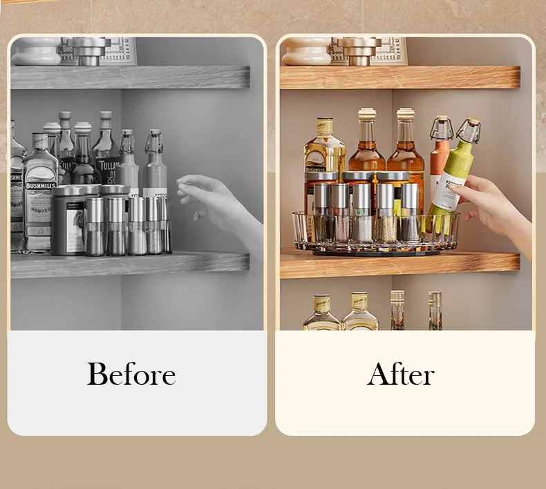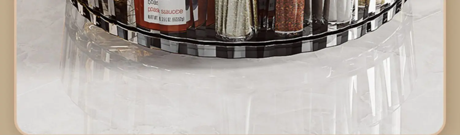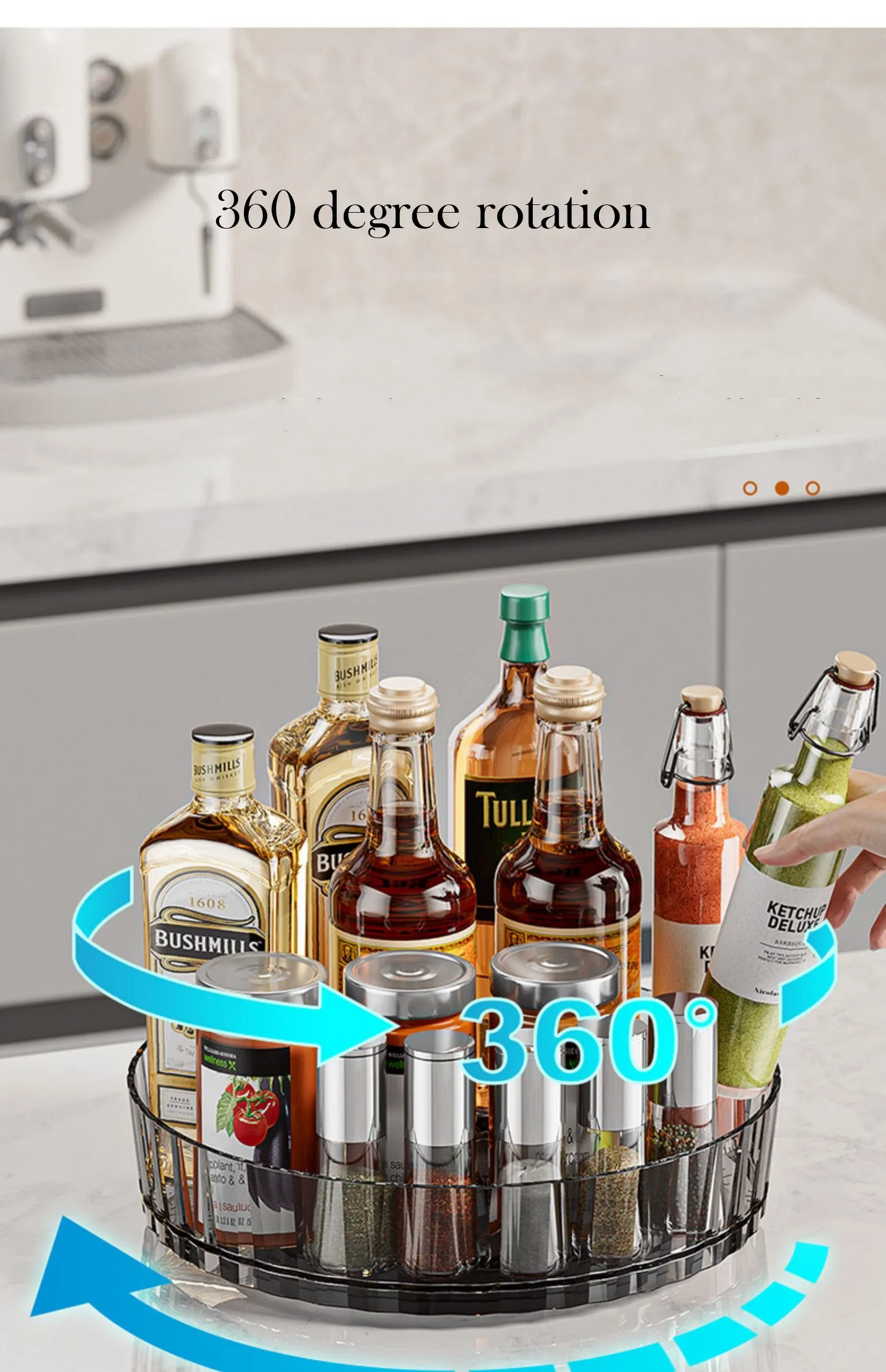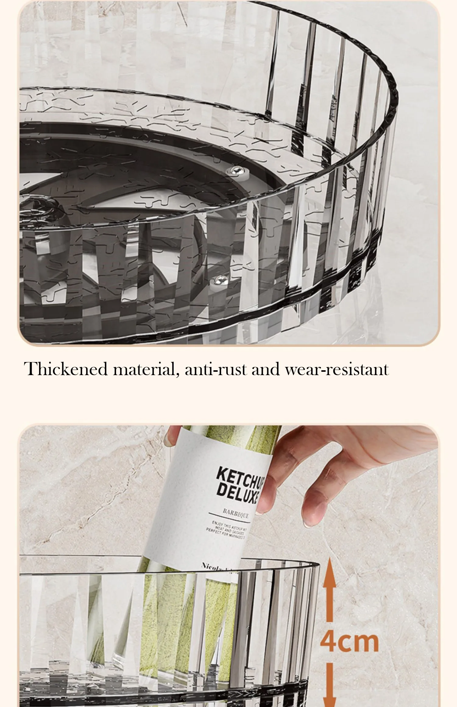 【Smooth Rotation】: The 360-degree rotating feature of this storage rack allows for smooth rotation without noise or shaking. The clear lazy susan bottom is combined with steel balls, ensuring a seamless rotation.