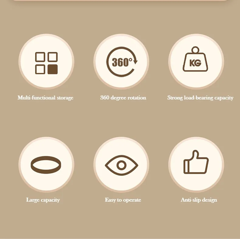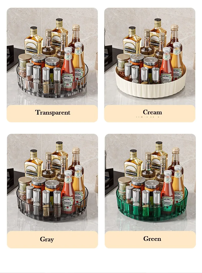 【Materials and Dimensions】:This rotating storage rack is made of high-quality plastic, ensuring durability and stability. It is easy to wash and clean with mild soap and water. Note: Do not put in the dishwasher.