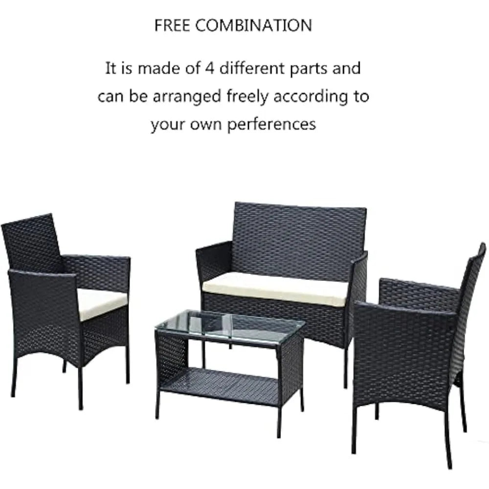 - ✔Strong and Sturdy: This patio furniture set is made with a powder-coated steel frame and all-weather pe rattan wicker for a comfortable experience.The wicker of the outdoor furniture set is sturdy but also very light. The seat cushion of this patio conversation set can be removed for easy cleaning.