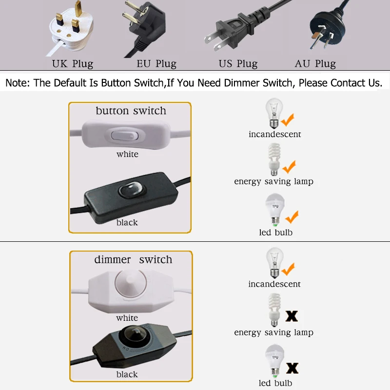 Light Source: LED E27 (Warm White Light)