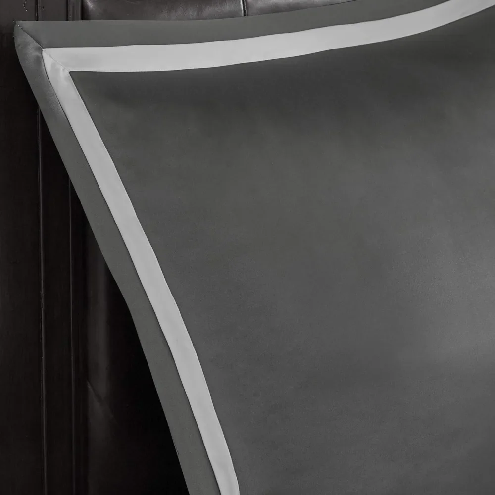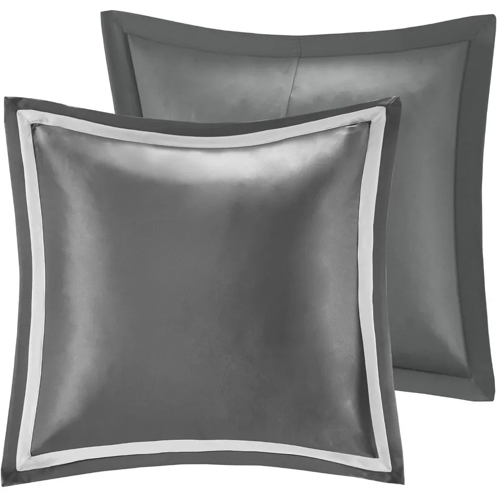 - MATERIAL DETAILS - Polyester jacquard with damask stria texture comforter and shams, microfiber reverse, 8oz/sq yard polyester filling, charmeuse bed skirt and euro shams, embroidered pillow with decorative cording, polyesting filling