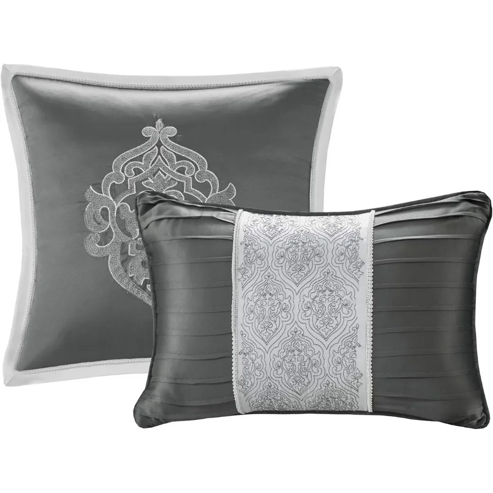 Cozy Comforter Set Jacquard Damask Medallion Design All Season,Down Alternative Bedding, Shams,King 104 in X92 in Silver 8 Piece