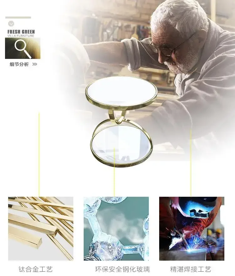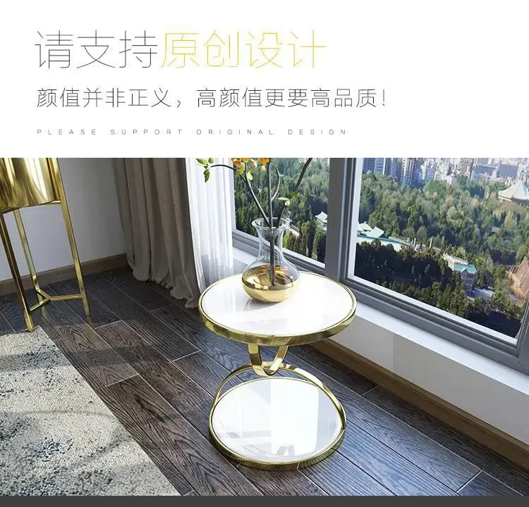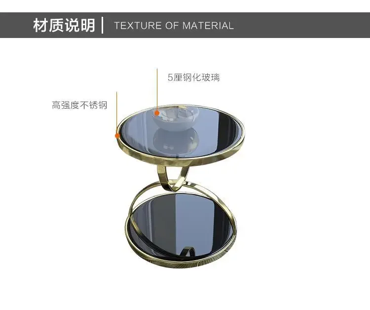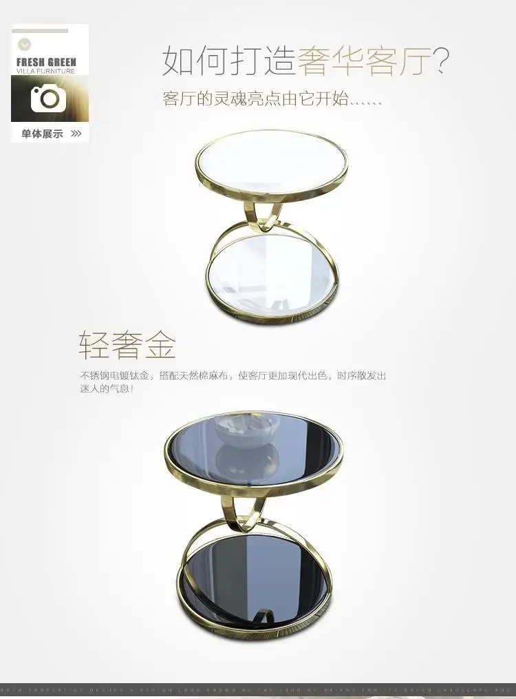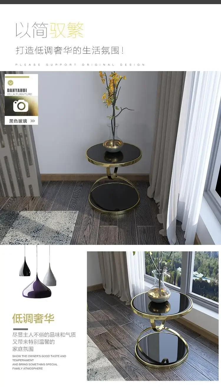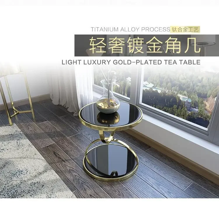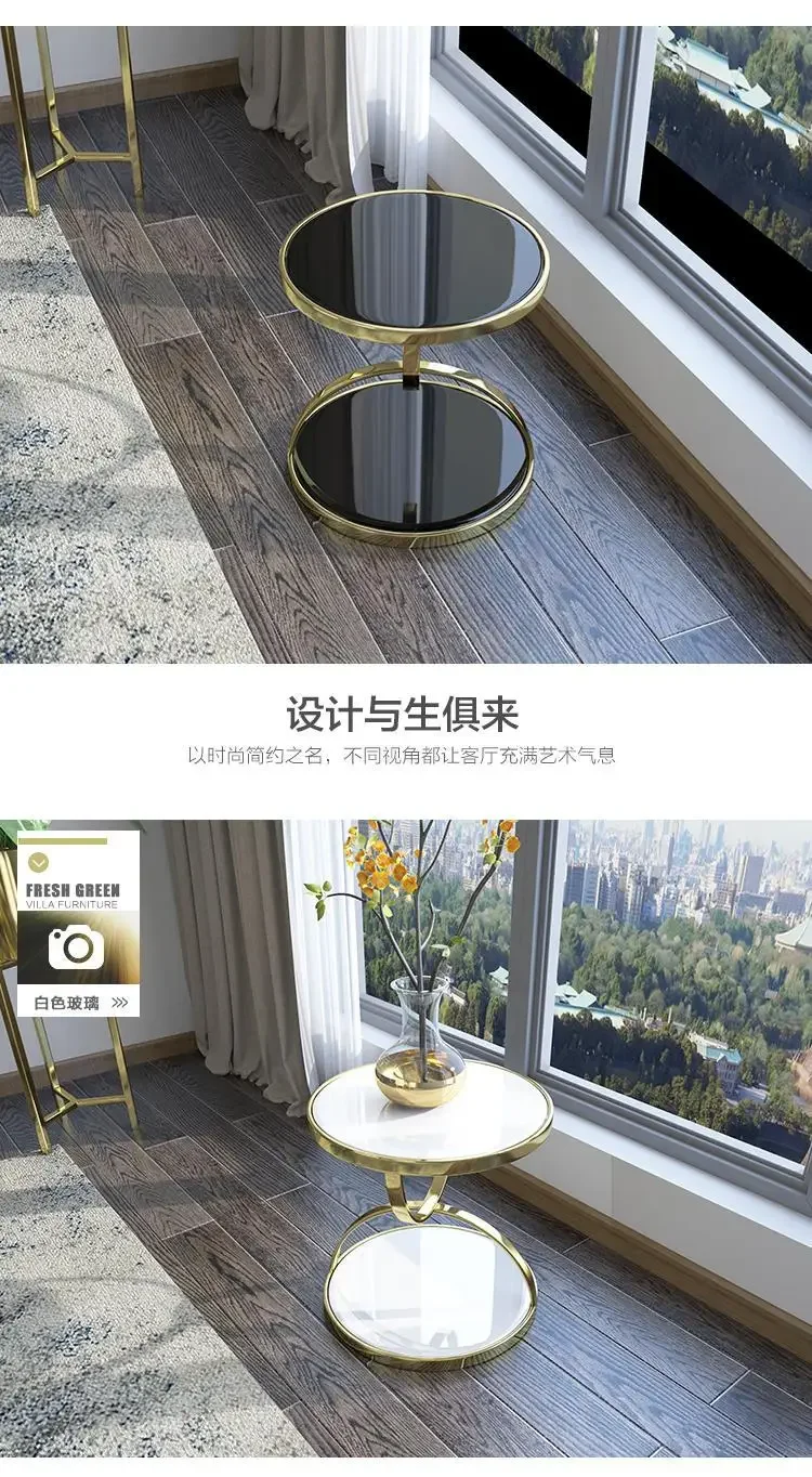 Light Luxury Tempered Glass Double Corner Table Living Room Sofa Side round Table Postmodern Balcony Coffee Table GN741TB