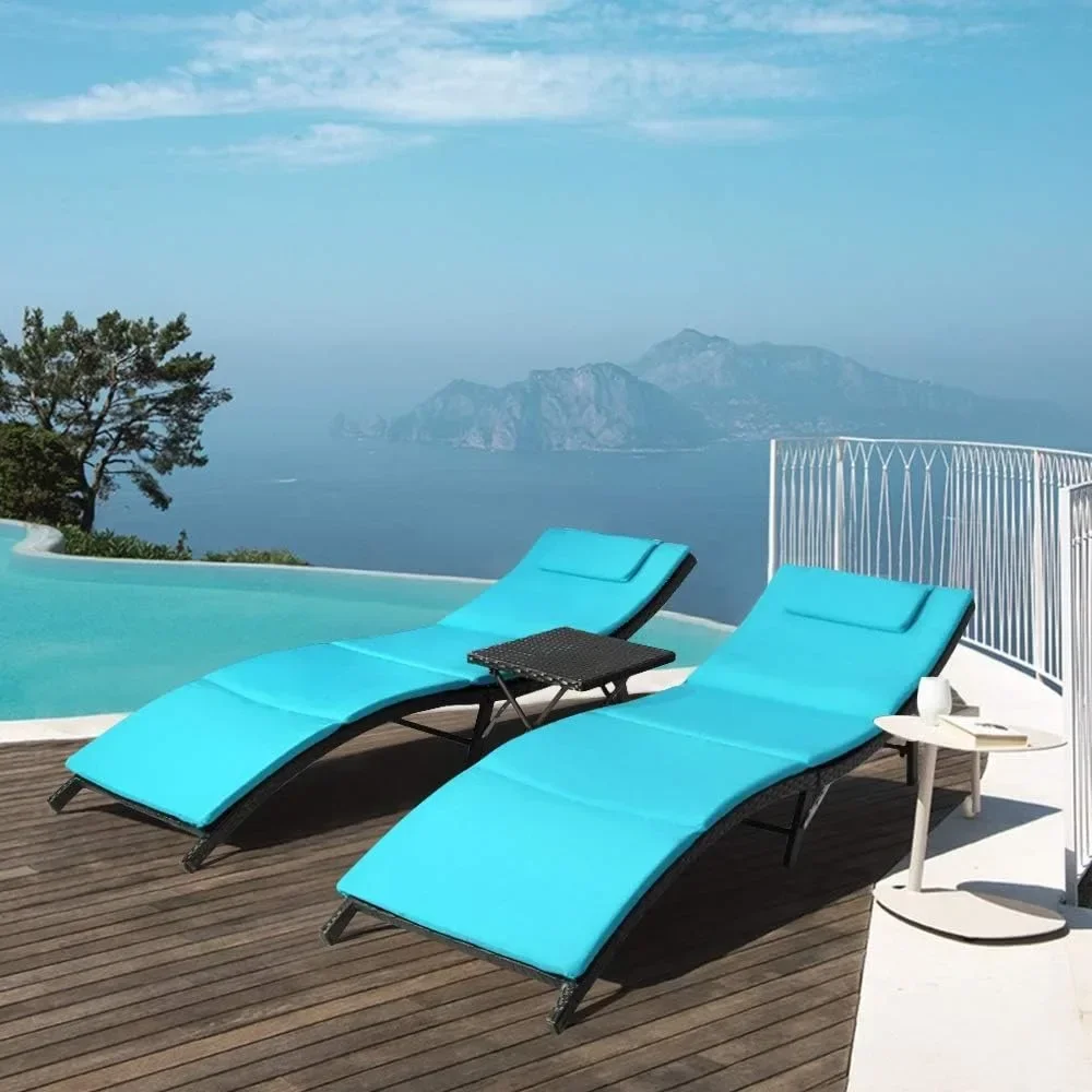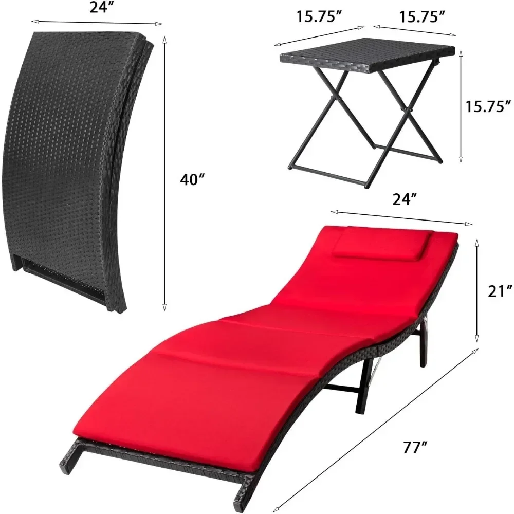 Outdoor Chaise Lounge Chair, 3 Pieces Chaises Set with Folding Table Poolside Rattan Reclining , Outdoor Chaise Lounge Chair